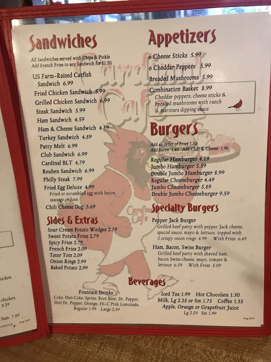 Cardinal Cafe in Camden, Arkansas, serves up a heartfelt blend of classic American and Southern breakfast and lunch fare, embodying genuine home cooking in a welcoming atmosphere. The menu boasts a robust selection of sandwiches—from the crisp, farm-raised US Catfish and savory fried chicken sandwiches to hearty deli staples like the Reuben and Philly steak. Specialty burgers, including the flavorful Pepper Jack and Ham, Bacon, Swiss burgers, offer indulgent options packed with bold tastes.